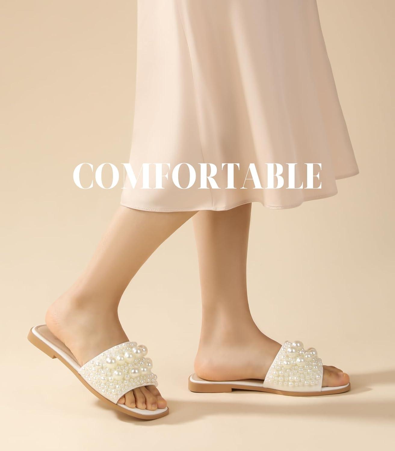 Ankis Black White Sandals Women Flat Sandals Comfortable Womens Slide Sandals Fashion Flat Sandals for Women 2025 Summer(Black)