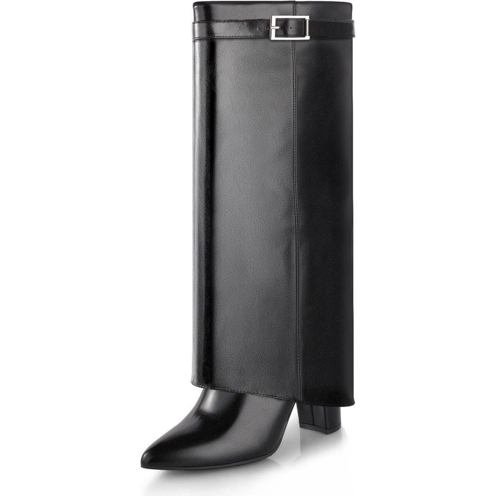 Get up to 60% off on Ankis Fold Over Knee High Boots for Women Chunky Heels Pointed toe with Side Zipper Long Tall Boots(Black Pu) styles during our winter sale event.