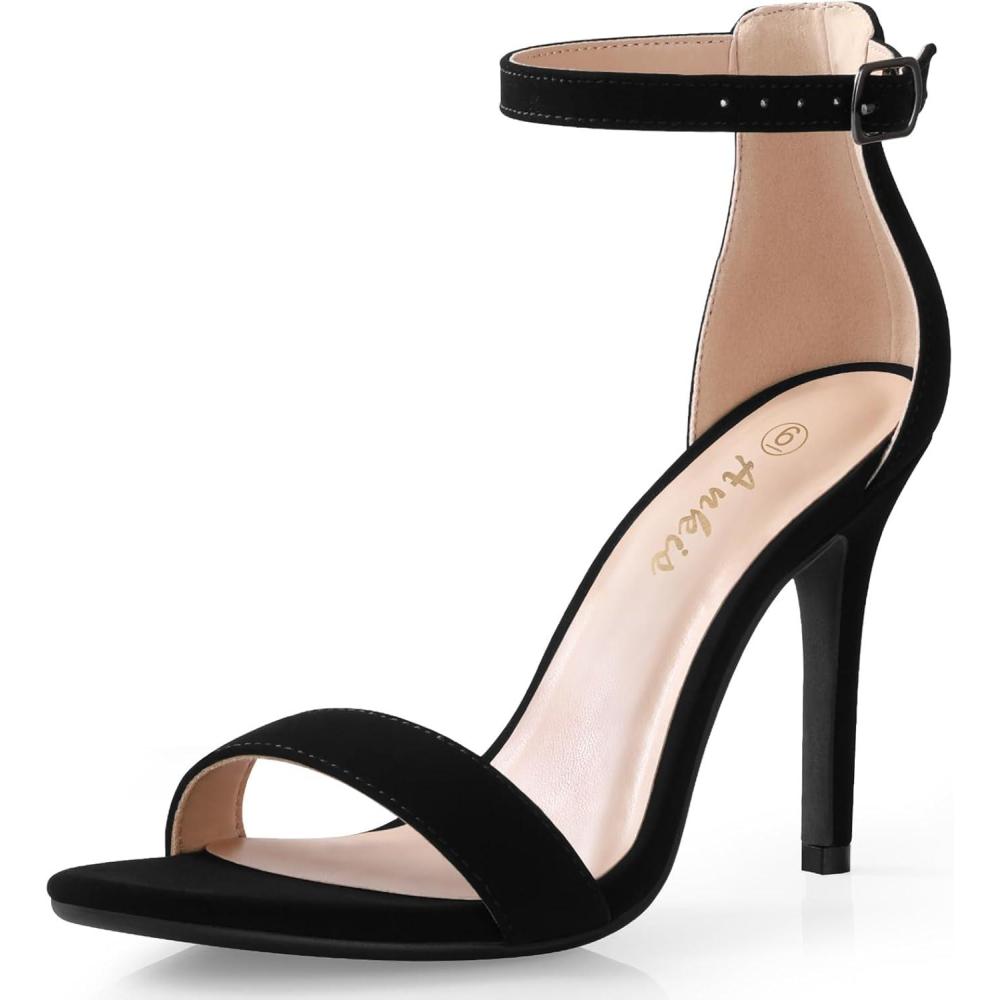 imageAnkis High Heels for Women 4 Inches Black Nude Gold Stiletto Heels Open Toe Ankle Strap Heeled Sandals for Dressy Wedding PartyBlack Suede