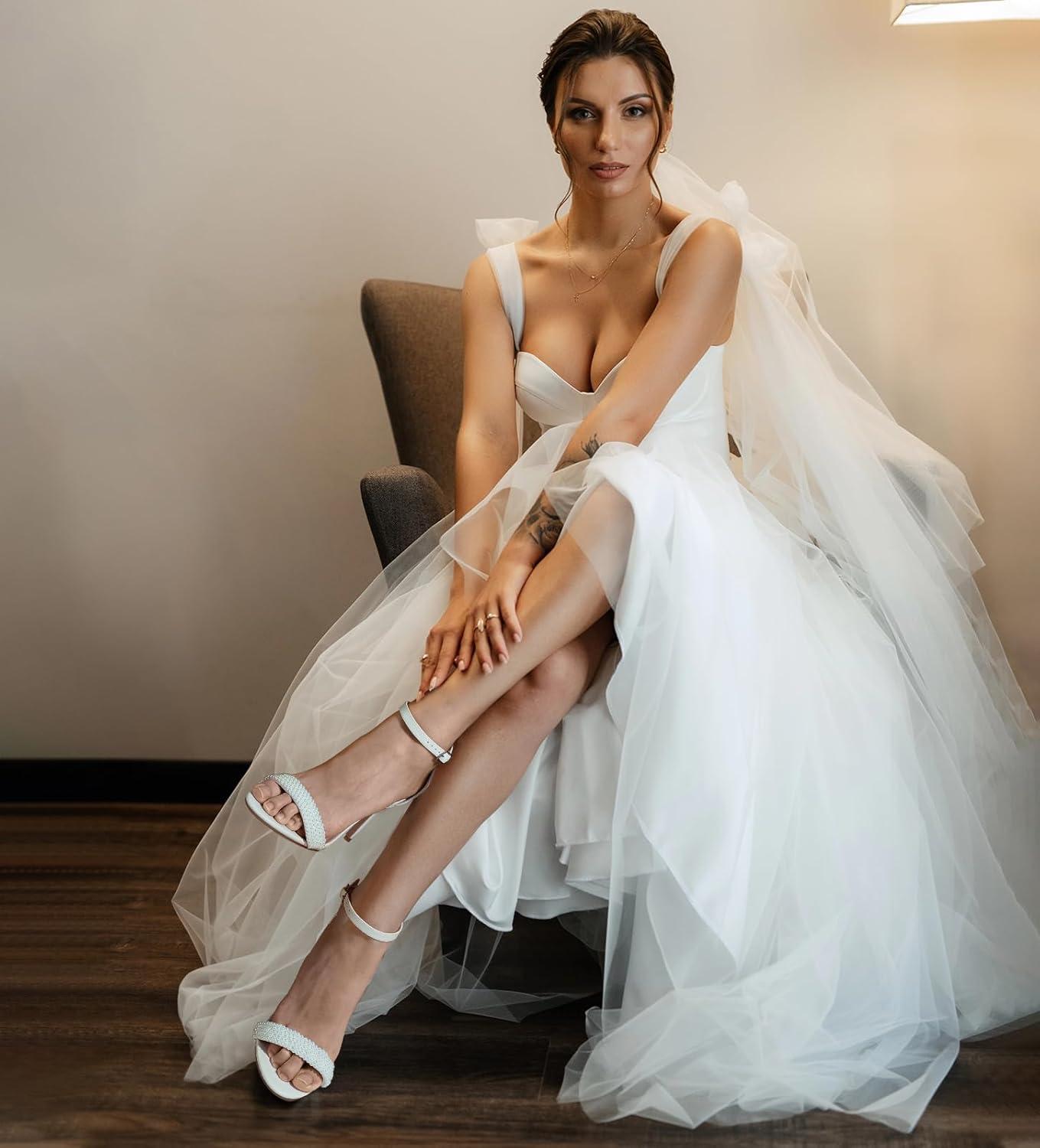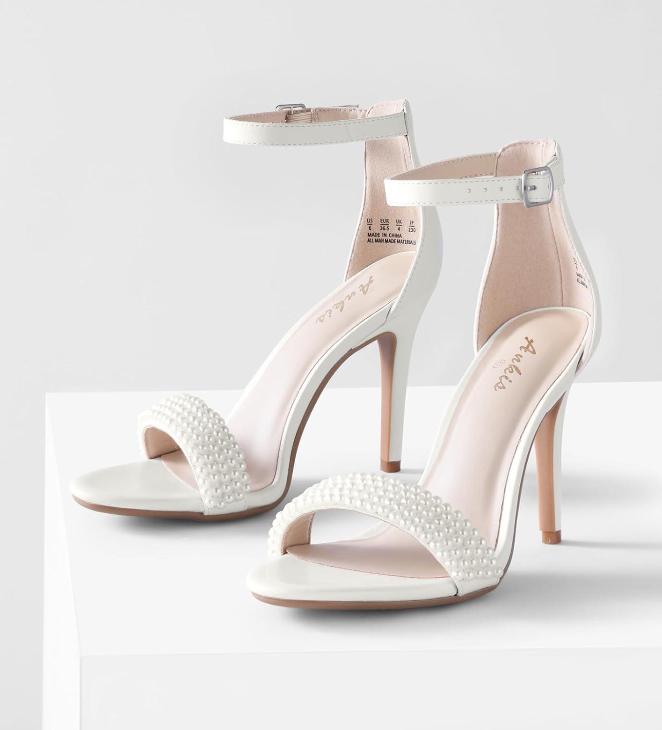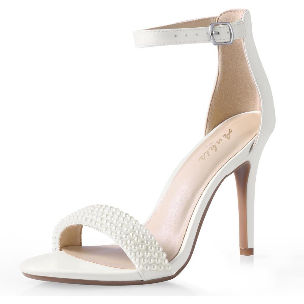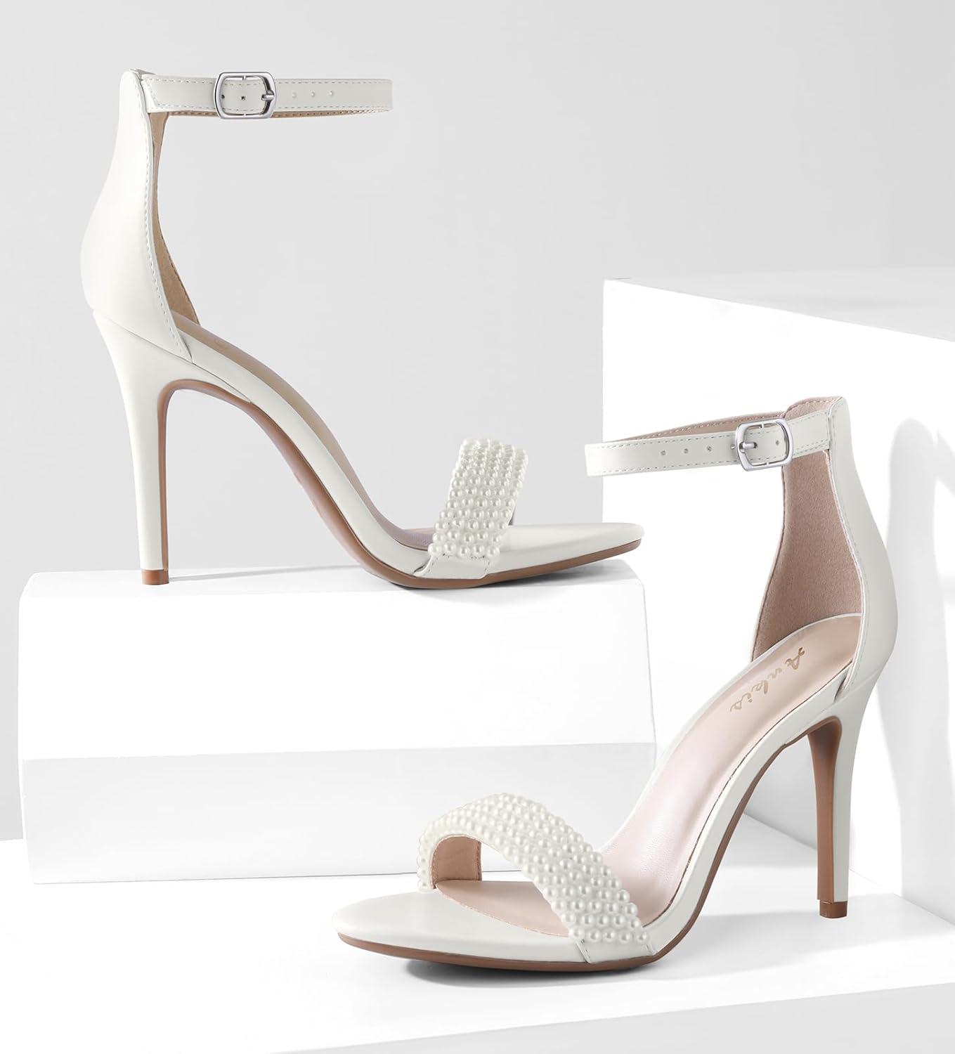 Ankis High Heels for Women 4 Inches, Black Nude Gold Stiletto Heels Open Toe Ankle Strap Heeled Sandals for Dressy Wedding Party(White-pearl)