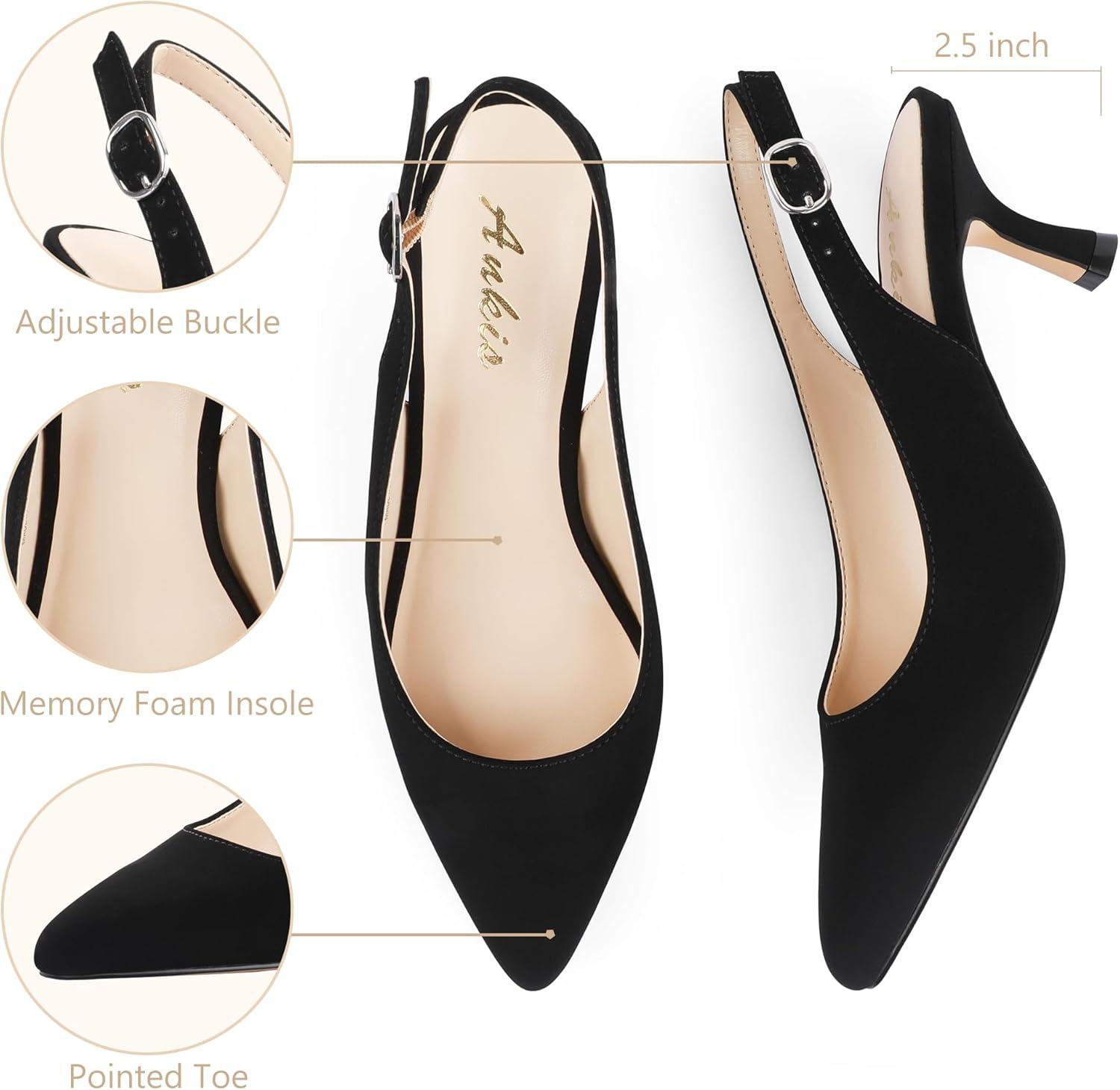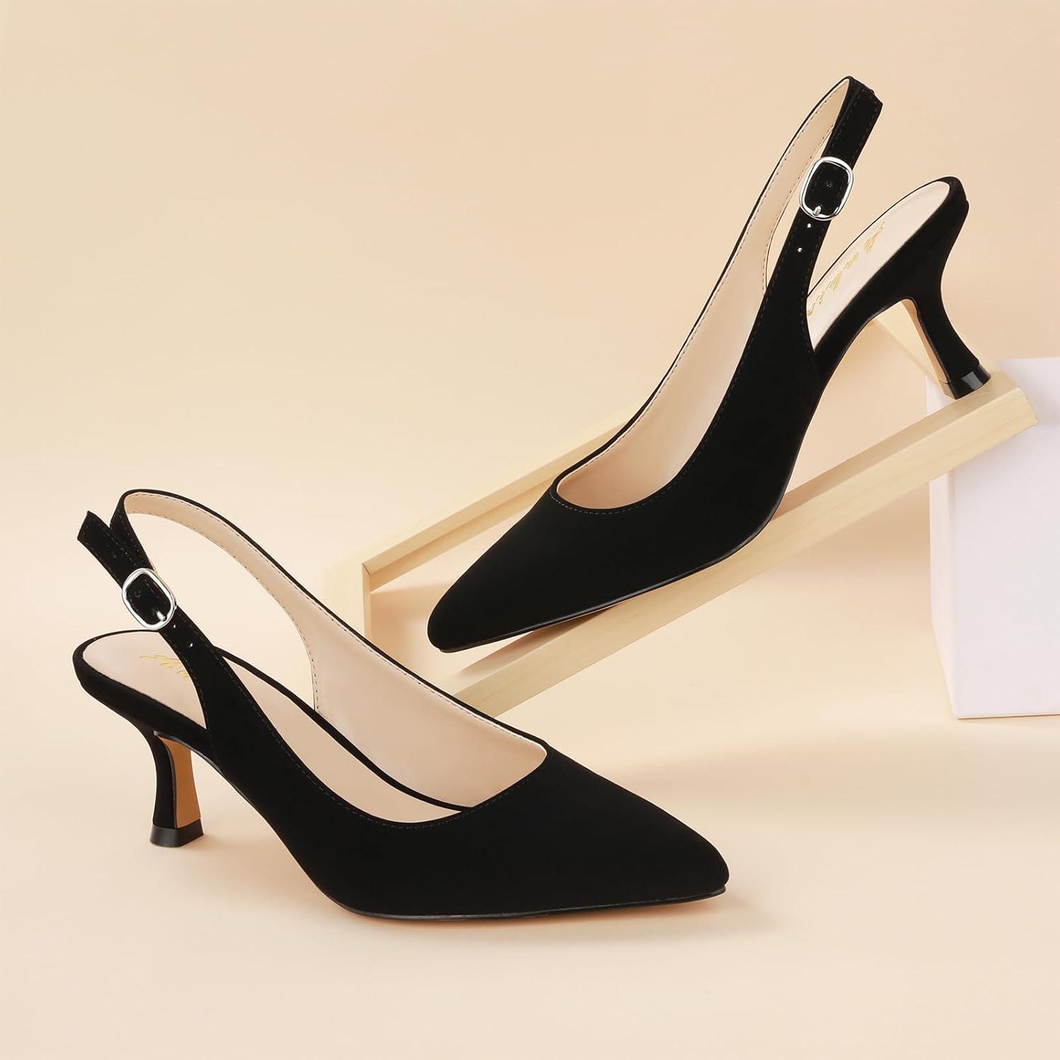 Ankis Women’s Slingback Kitten Heels Closed Pointed Toe Pumps Dress Shoes Party Wedding Casual 2.5inch(Black Nubuck)