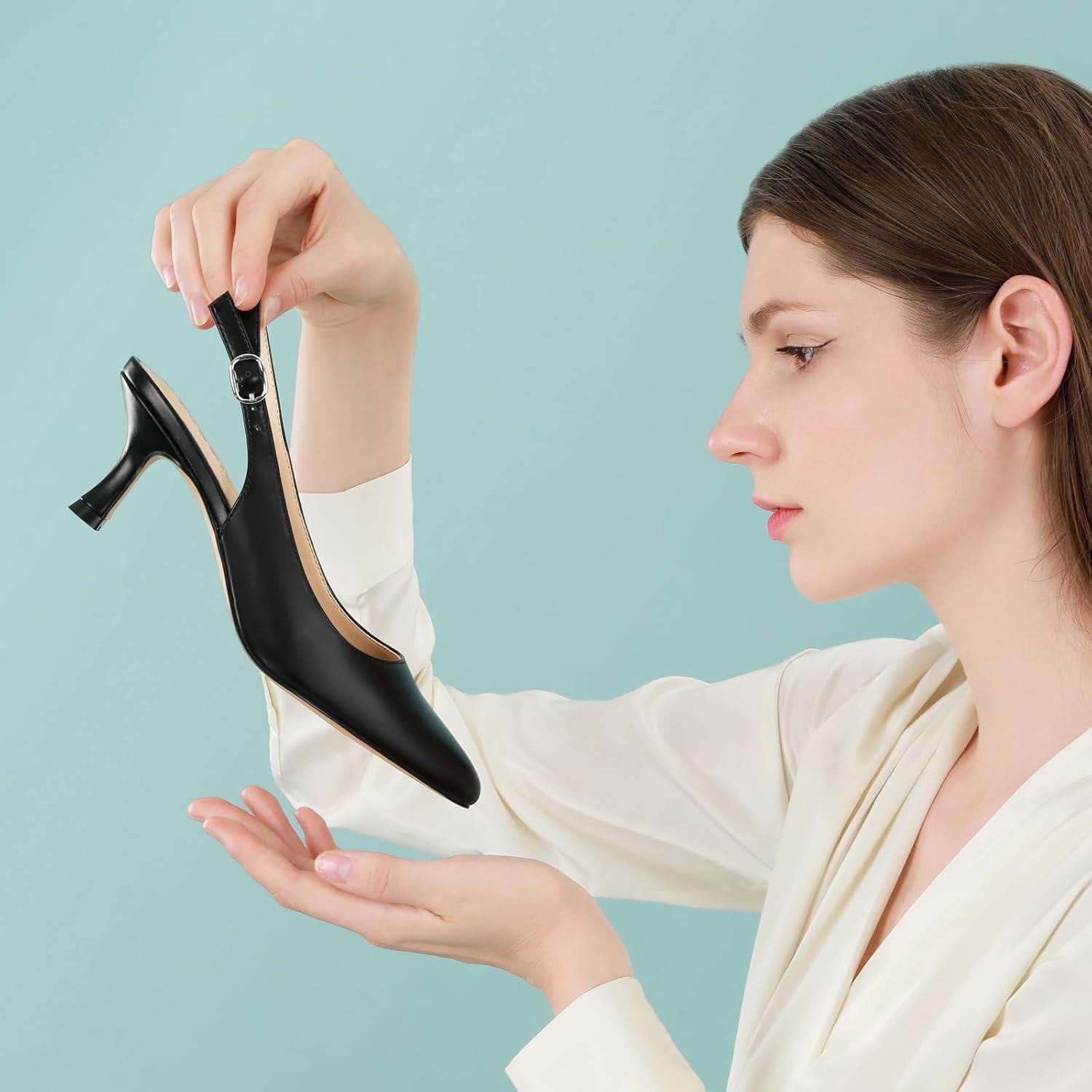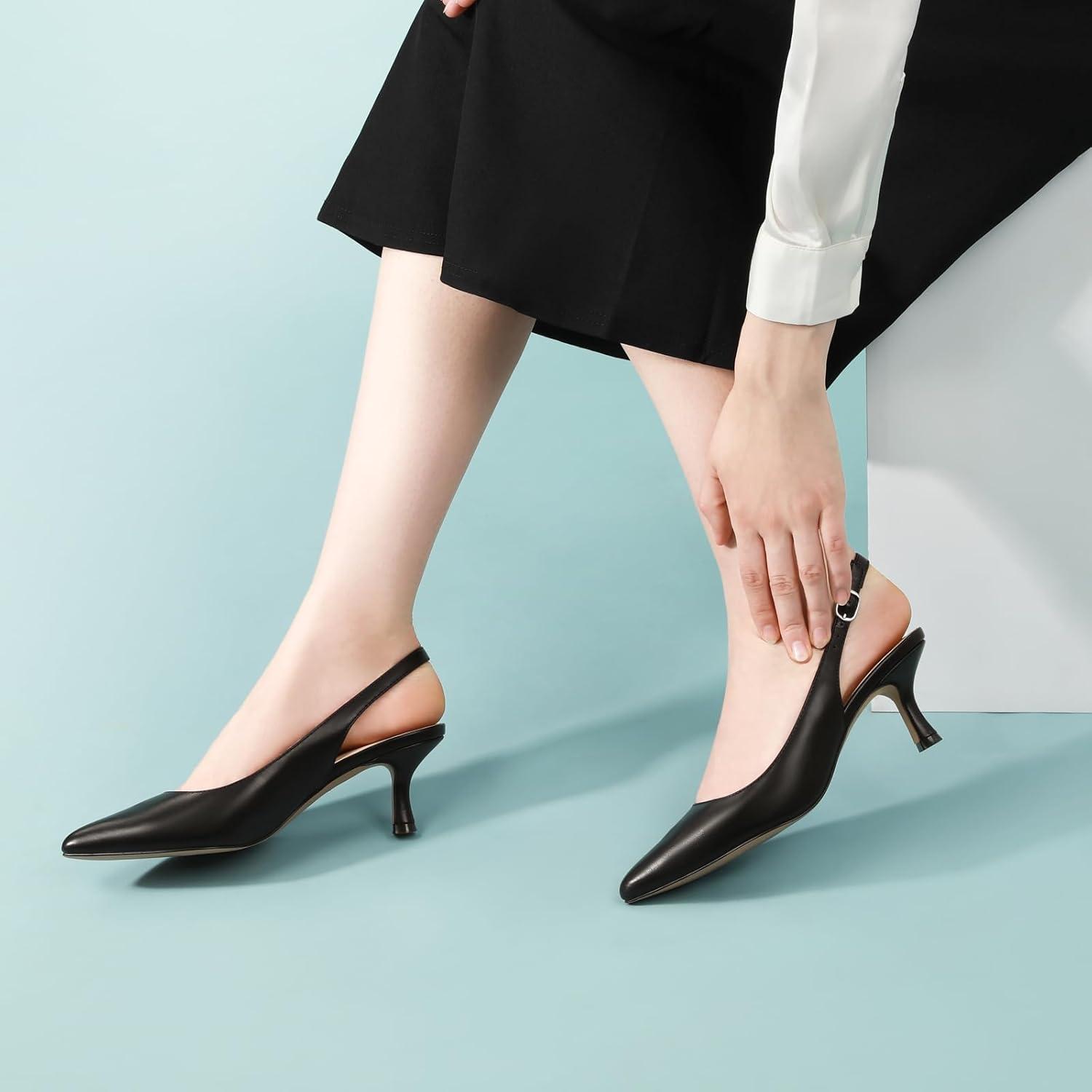 Ankis Women’s Slingback Kitten Heels Closed Pointed Toe Pumps Dress Shoes Party Wedding Casual 2.5inch(Black Pu)