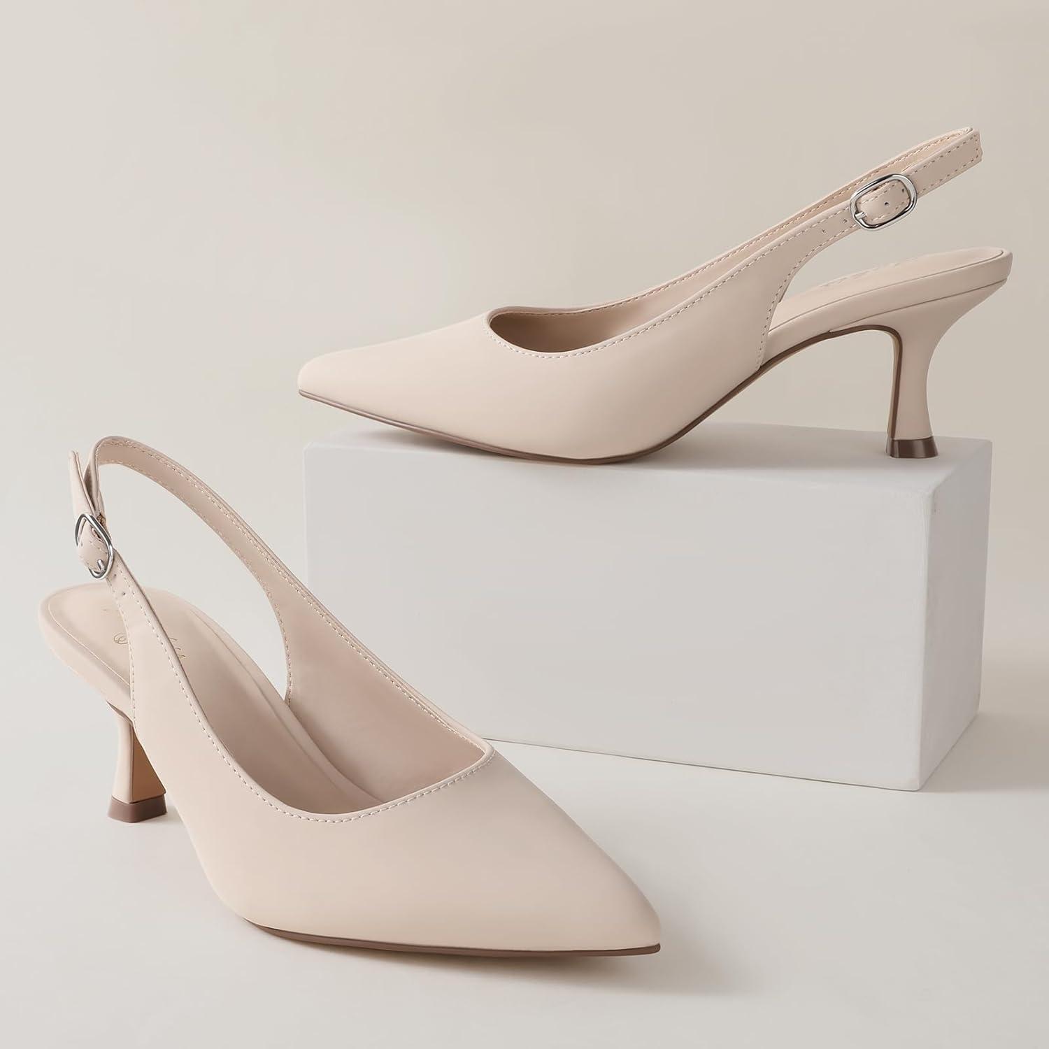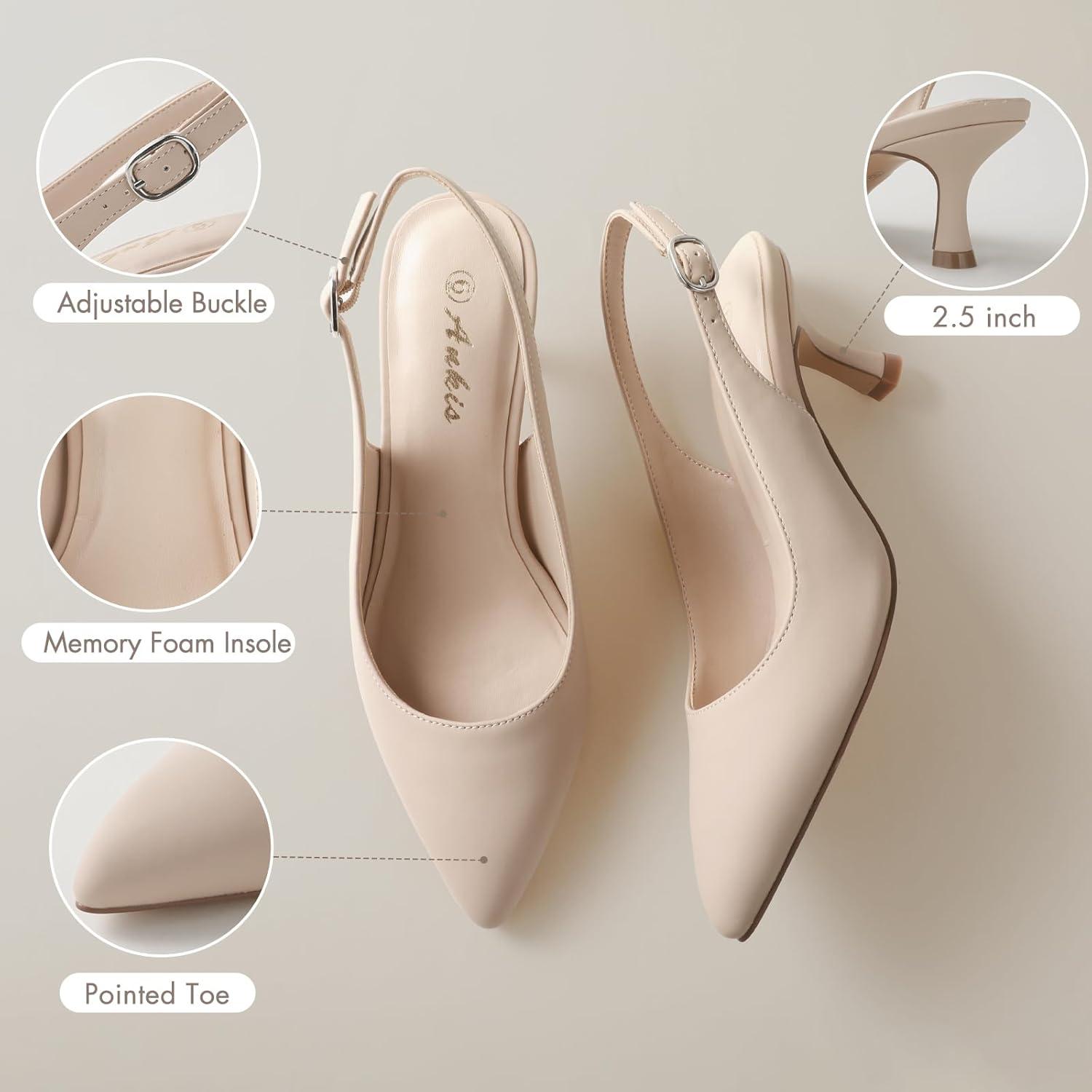 Ankis Women’s Slingback Kitten Heels Closed Pointed Toe Pumps Dress Shoes Party Wedding Casual 2.5inch(Nude Almond)