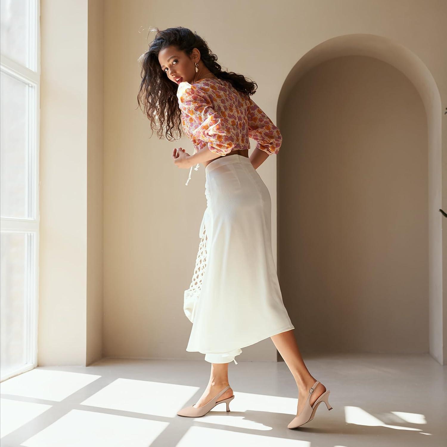 Ankis Women’s Slingback Kitten Heels Closed Pointed Toe Pumps Dress Shoes Party Wedding Casual 2.5inch(White Pu)