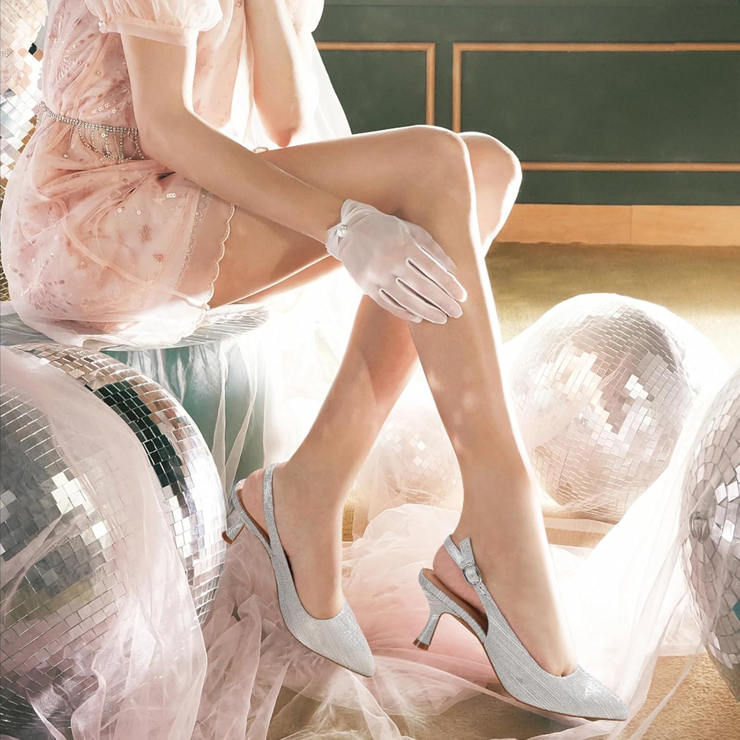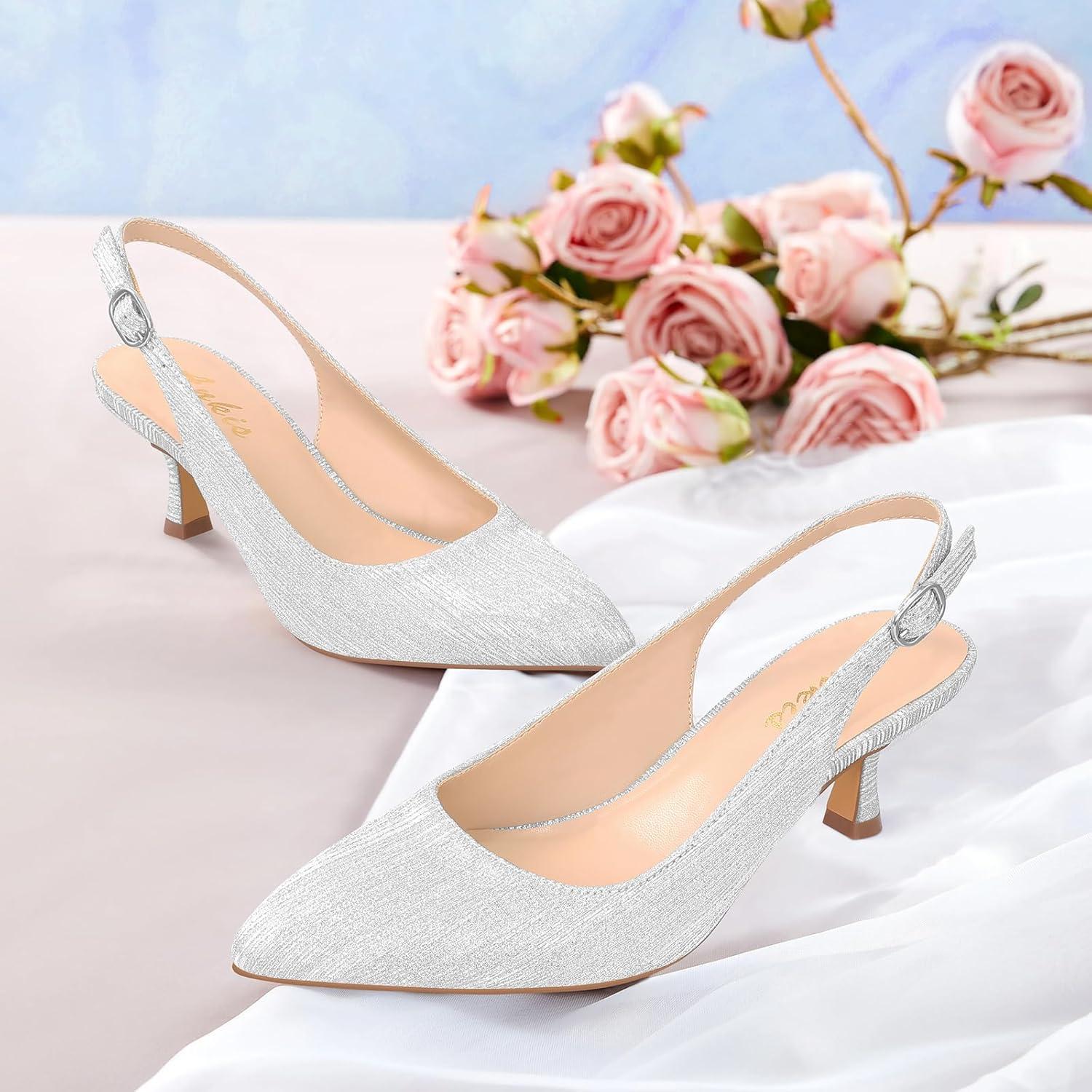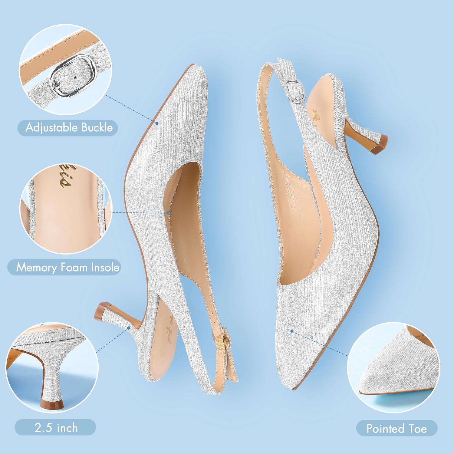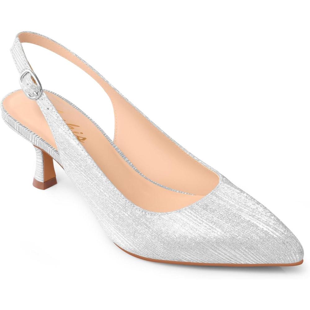 Ankis Women’s Slingback Kitten Heels Closed Pointed Toe Pumps Dress Shoes Party Wedding Casual 2.5inch(Silver-1)