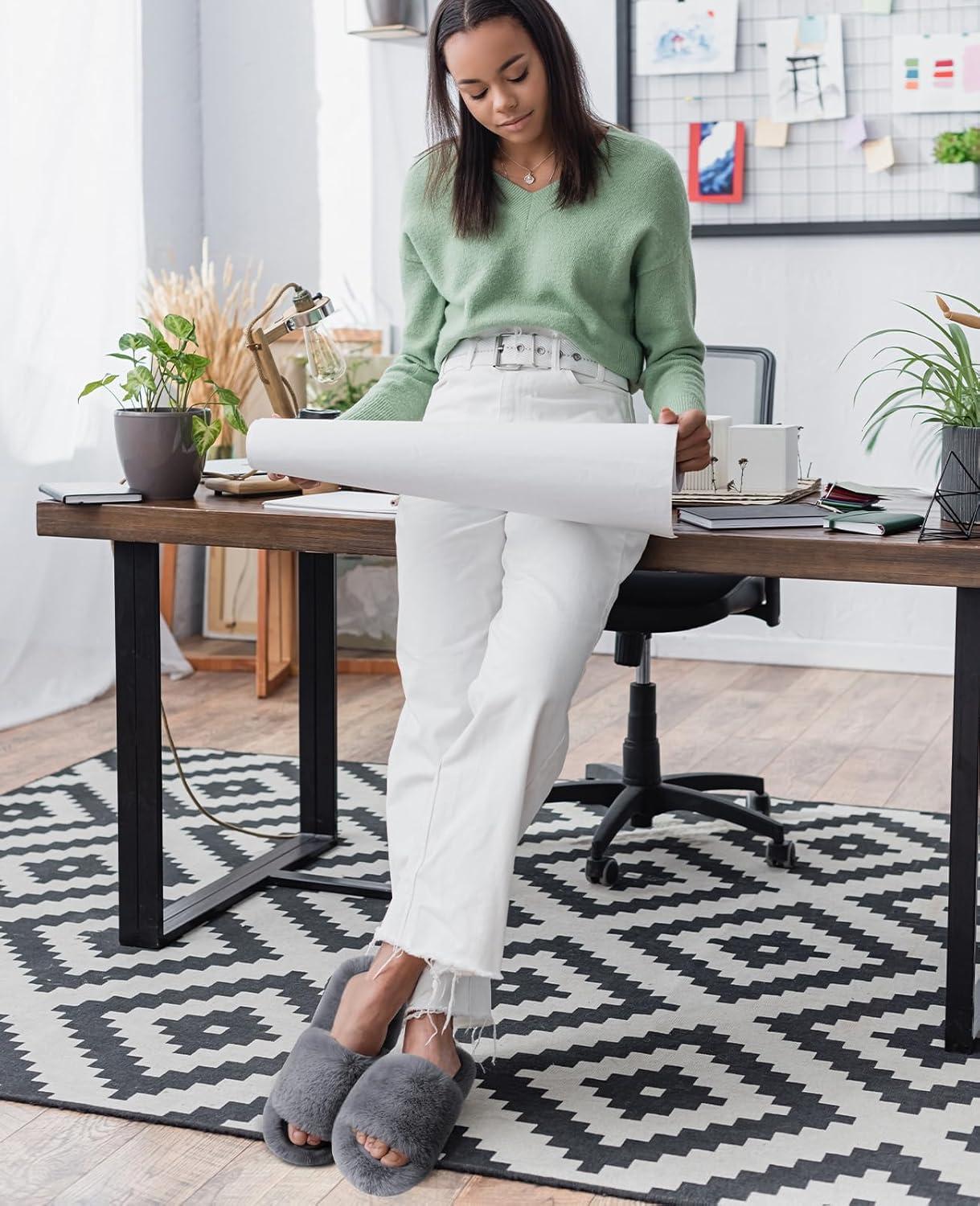 Ankis Womens’s Slippers Comfy Memory Foam House Open Toe Fuzzy Slipper Plush Indoor Outdoor Slide Furry Platform Fur Lined Shoes(Black)