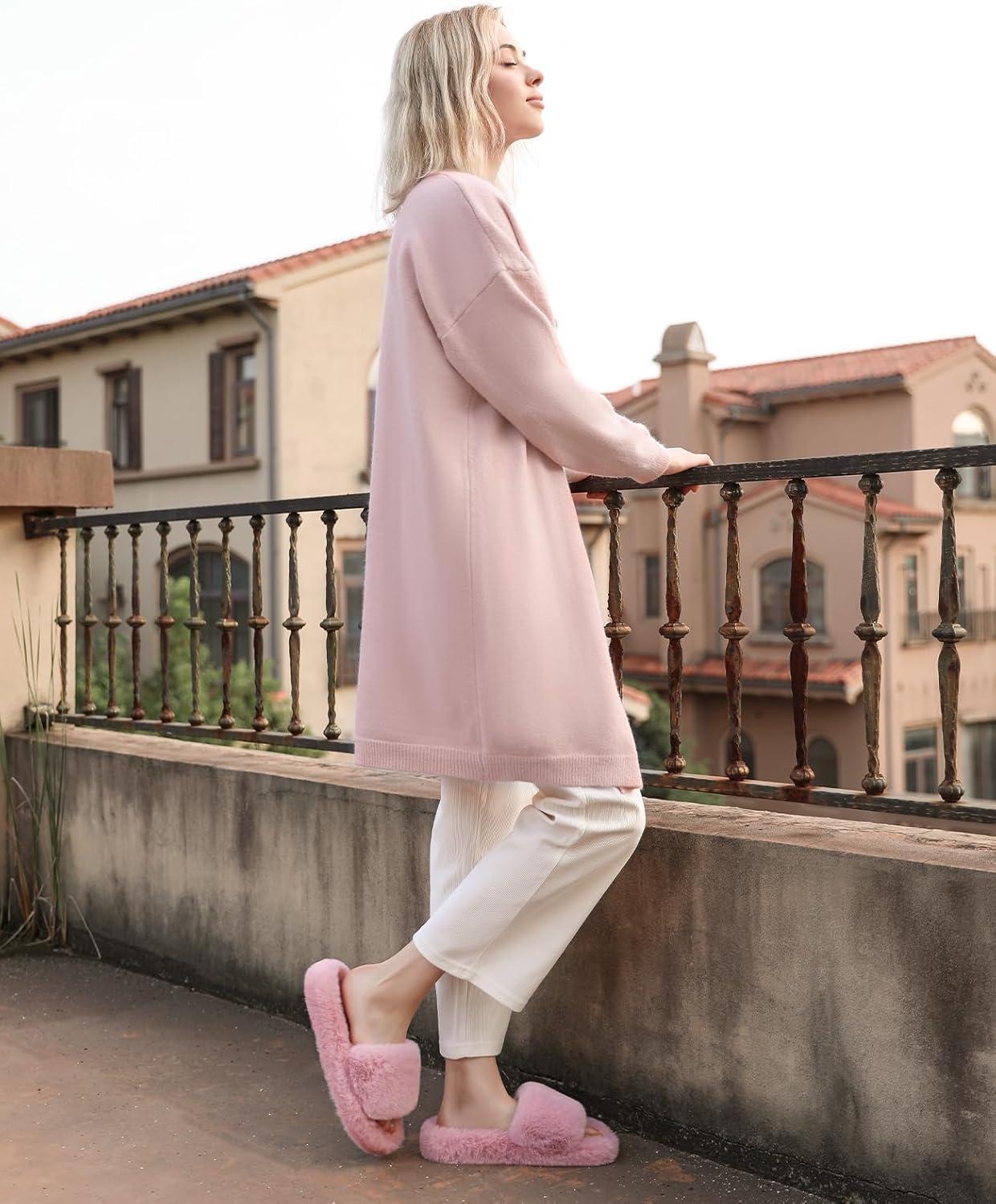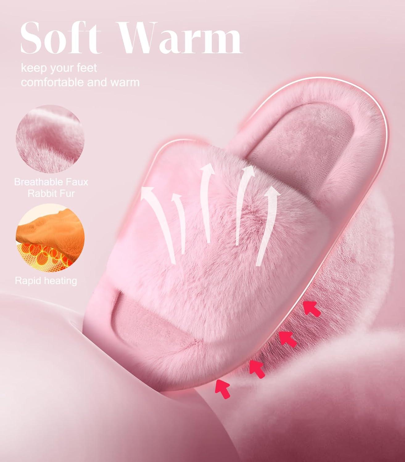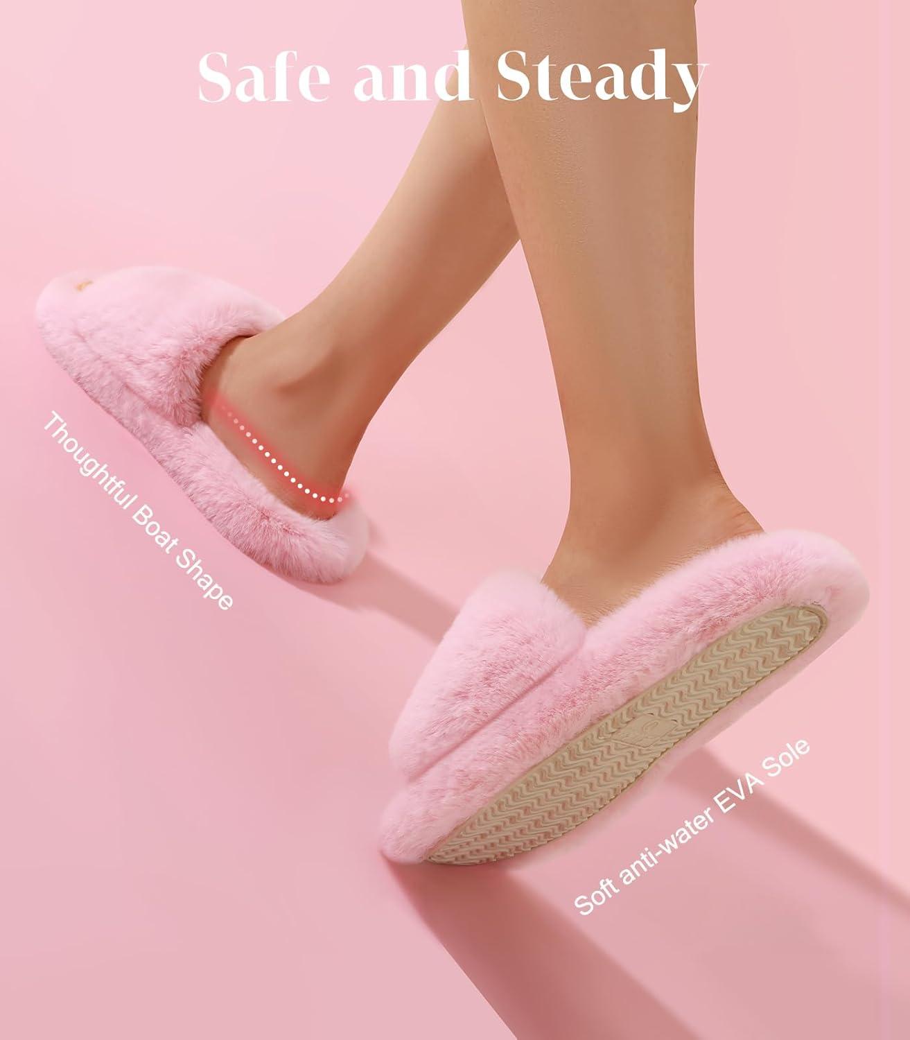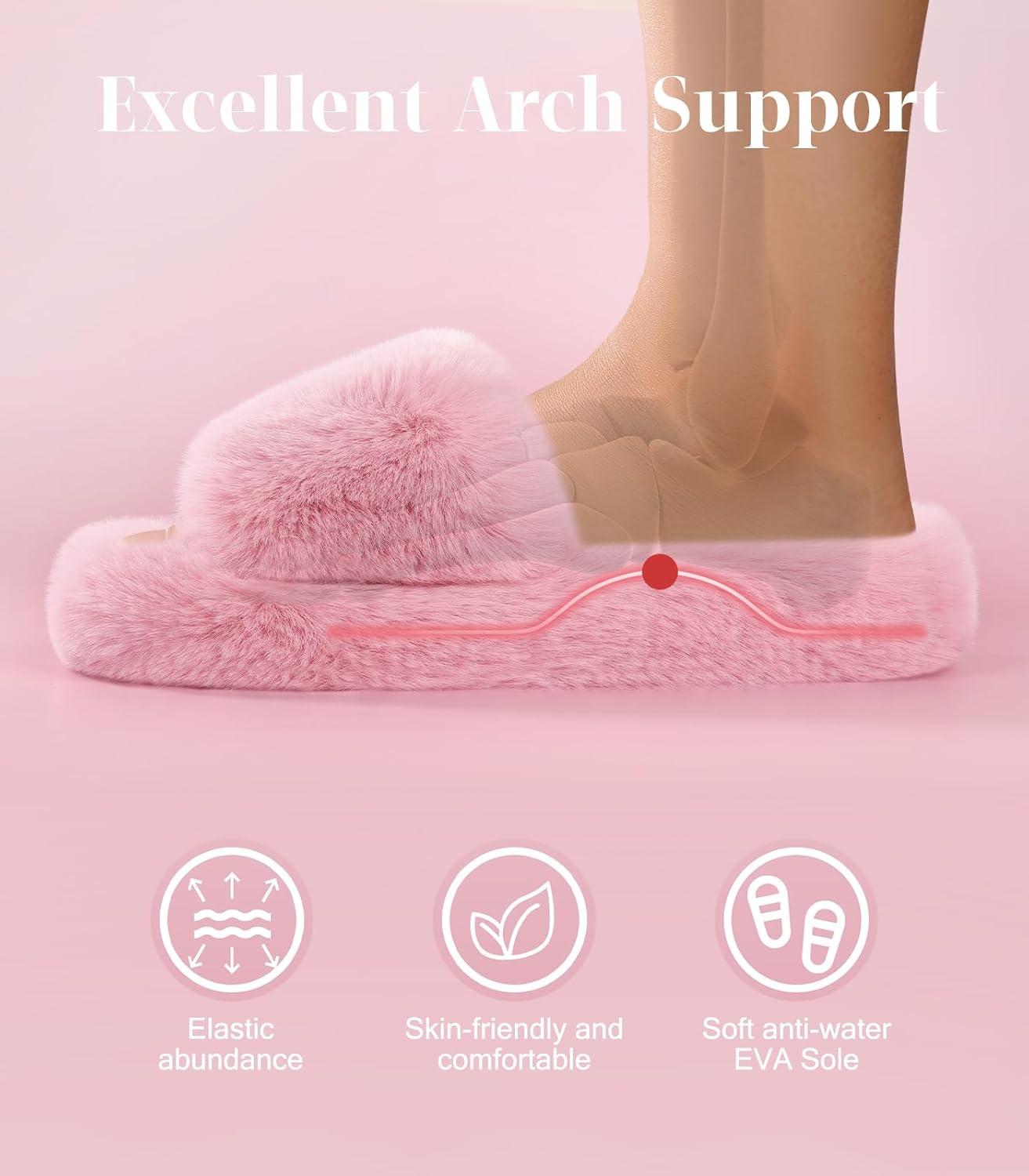 Ankis Womens’s Slippers Comfy Memory Foam House Open Toe Fuzzy Slipper Plush Indoor Outdoor Slide Furry Platform Fur Lined Shoes(Pink)