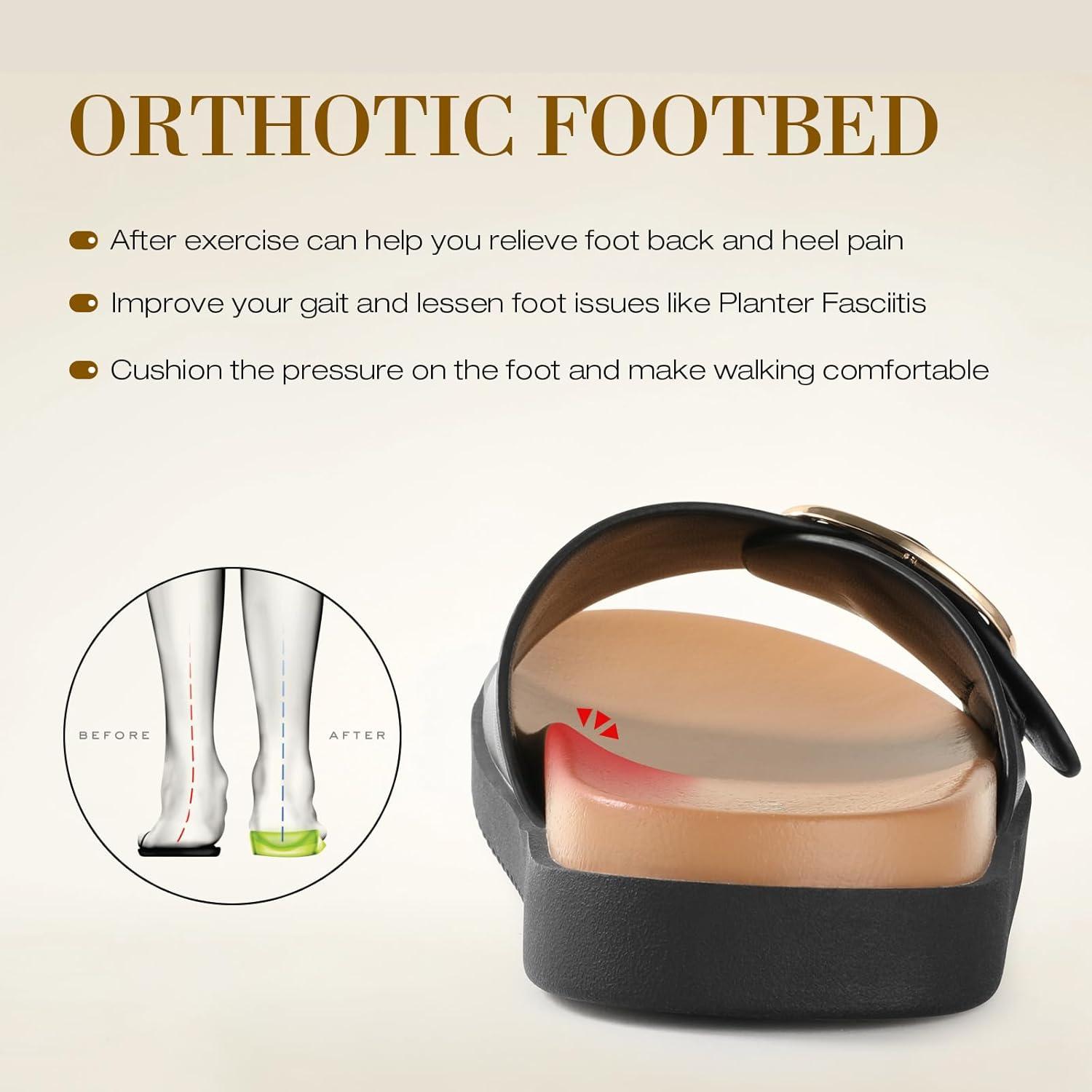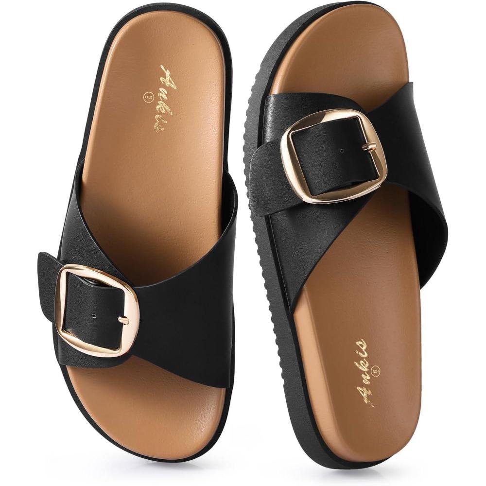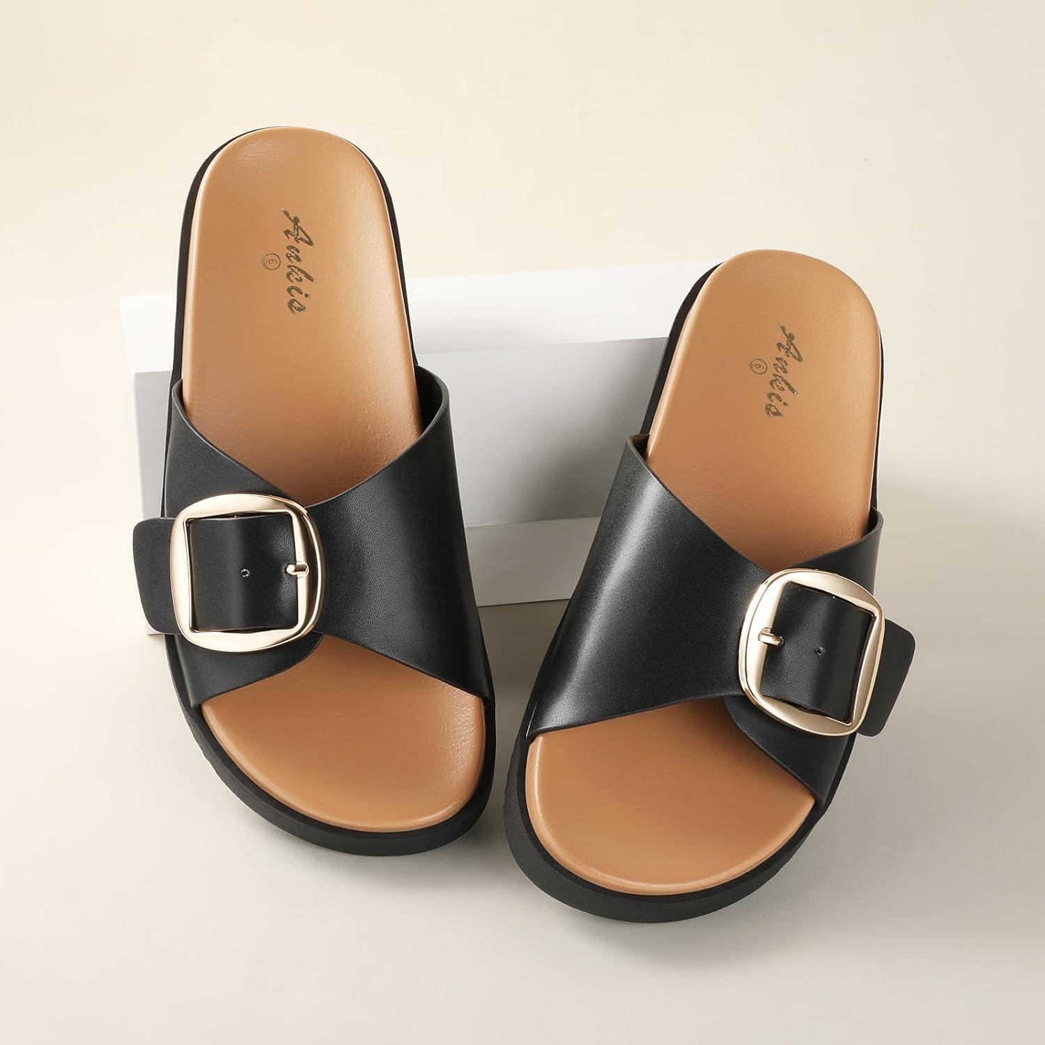 Brown Black White Flat Sandals for Women 2025,Wide Width Leather Sandals for Women Comfortable Dressy,Womens Summer Beach Sandals with Adjustable Strap and Buckle(Black)